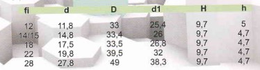Dimensionen: Entsprechend der Zeichnung und der beigefügten Tabelle.